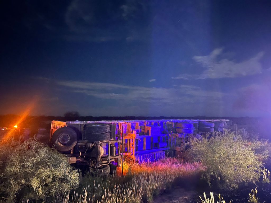 Un fuerte vuelco generó momentos de tensión en la madrugada de este miércoles en Ruta Nacional N° 20, a la altura del kilómetro 477, en el departamento 25 de Mayo. El hecho ocurrió cerca de las 02:00 horas, cuando el sistema de emergencias 911 alertó sobre el vuelco de un camión en la zona, al oeste del control policial de Tránsito.