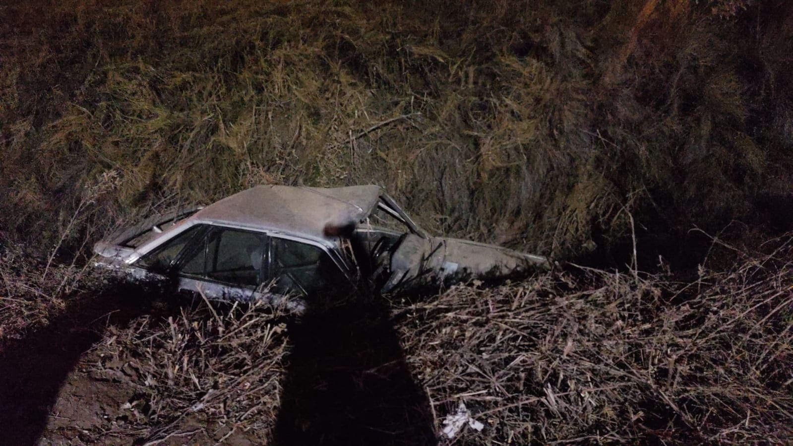 El auto perdió el control y se despistó abruptamente hacia un costado de la calzada, cayendo en un canal, lo que provocó importantes daños materiales. Afortunadamente, Díaz logró salir por sus propios medios y fue hallado consciente sobre la calzada.