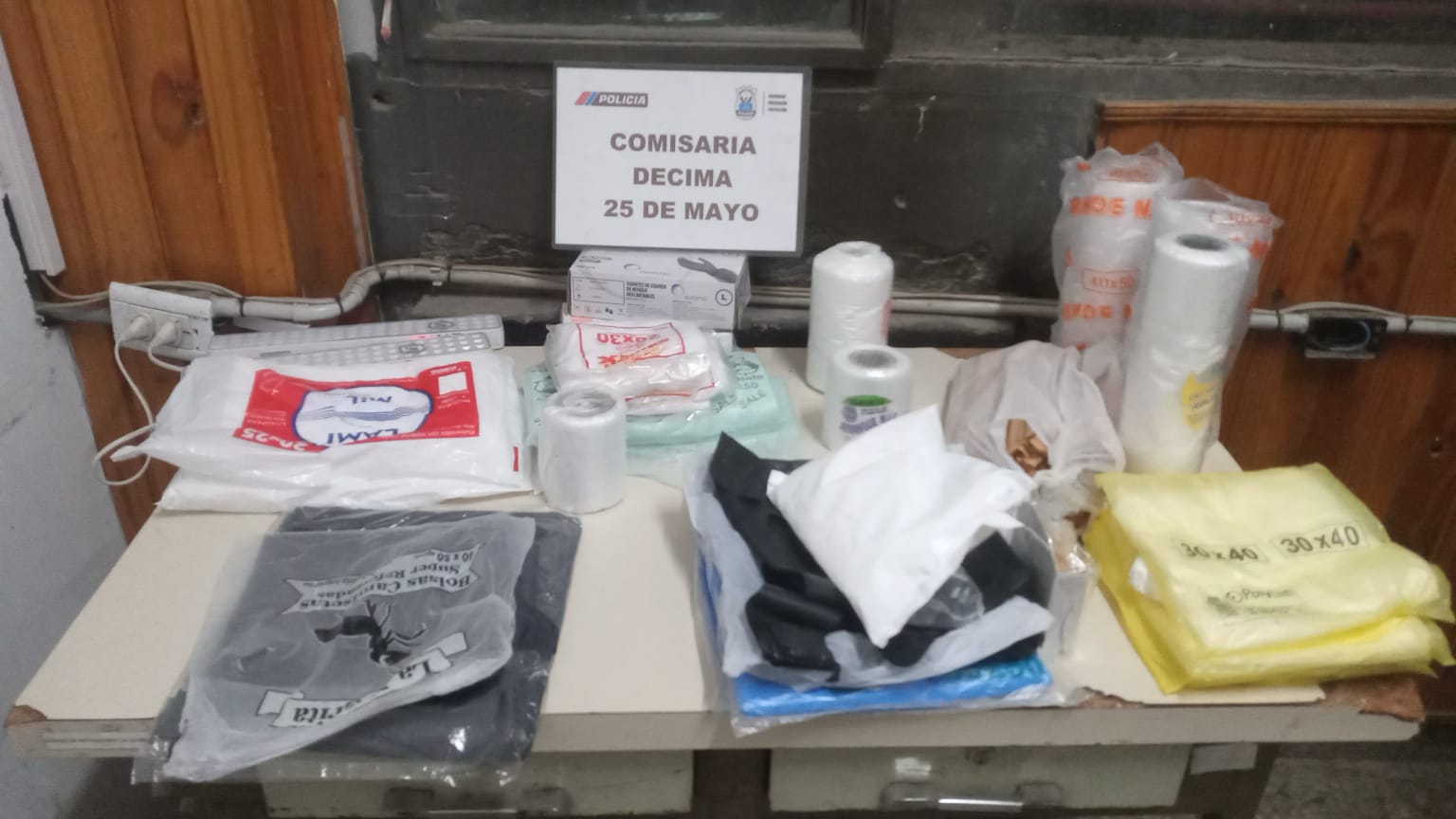 La damnificada, de 27 años, contó que al dirigirse al fondo de su casa en el barrio Federico Maggio, encontró la puerta abierta y constató que faltaban varias bolsas y rollos de nylon, cajas de guantes de nitrilo, una bolsa de sorbetes, una caja de palillos, bolsas de residuos y otros elementos.