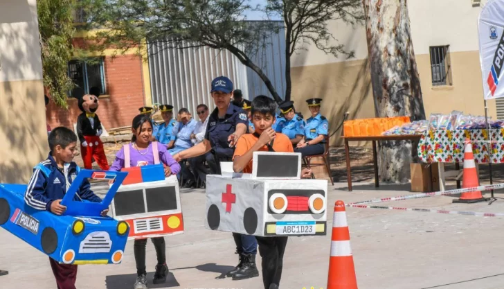Además, el área de Educación Vial instaló una pista con señalización para enseñar a los alumnos sobre normas de tránsito y seguridad, utilizando pequeños vehículos de cartón en un circuito educativo.