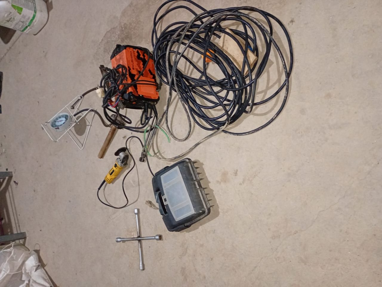 Acto seguido, junto al personal policial, se realizó un rastrillaje por la zona de cultivos. A unos 200 metros antes de llegar a calle 24, se hallaron varios de los elementos robados: el alargue, el taladro, la soldadora, el medidor de aire, la llave cruz y otras herramientas. Los objetos fueron secuestrados y posteriormente devueltos a su legítimo propietario.