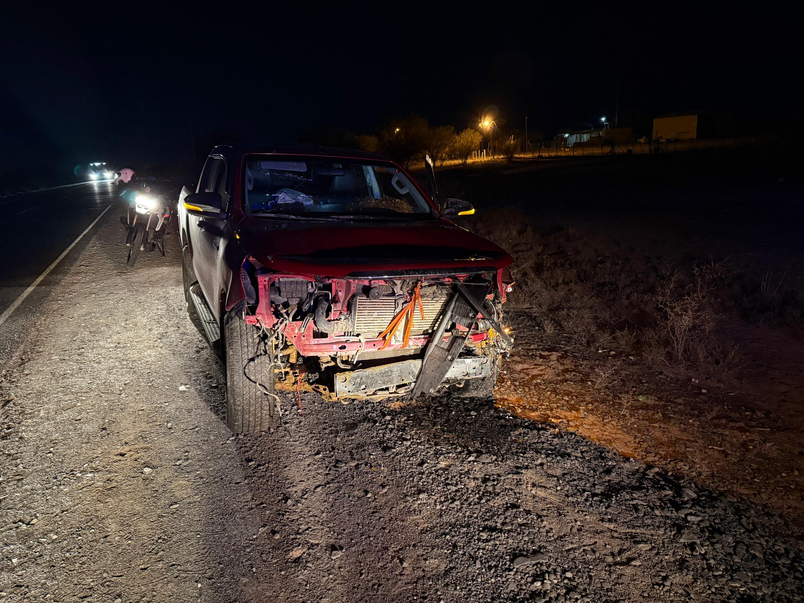 Producto del choque, el frente de la camioneta quedó completamente destruido. Afortunadamente, Vrizuela Silva no sufrió lesiones, aunque los daños materiales fueron significativos. Los animales fallecieron en el acto, indicaron fuentes policiales.