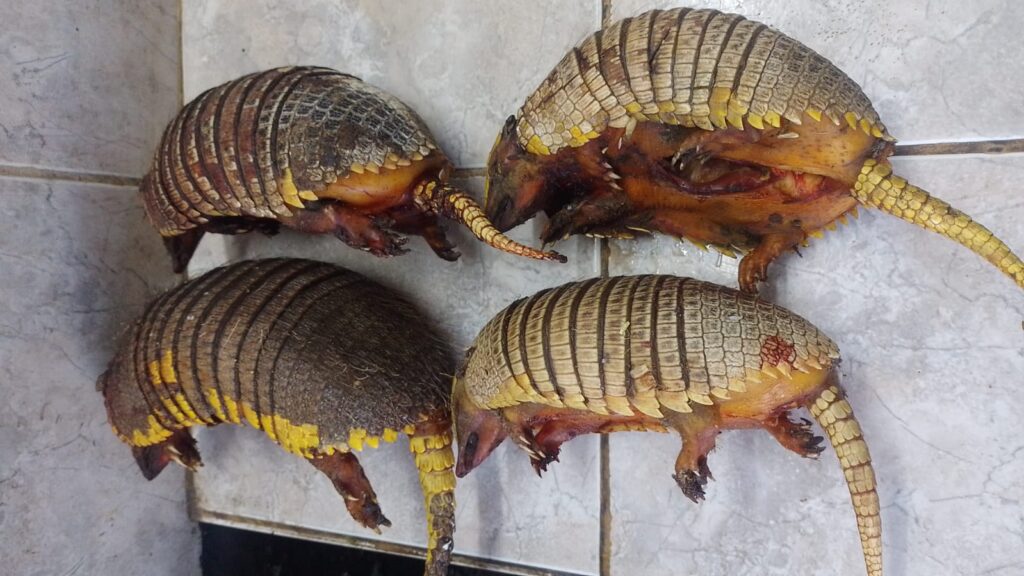 En el sitio, entrevistaron a Cristian Antonio Ortiz, de 30 años, quien tenía en su poder cuatro quirquinchos faenados. Estos animales, de la especie Chaetophractus nationi, están protegidos y su caza está prohibida por la Ley 606-L.