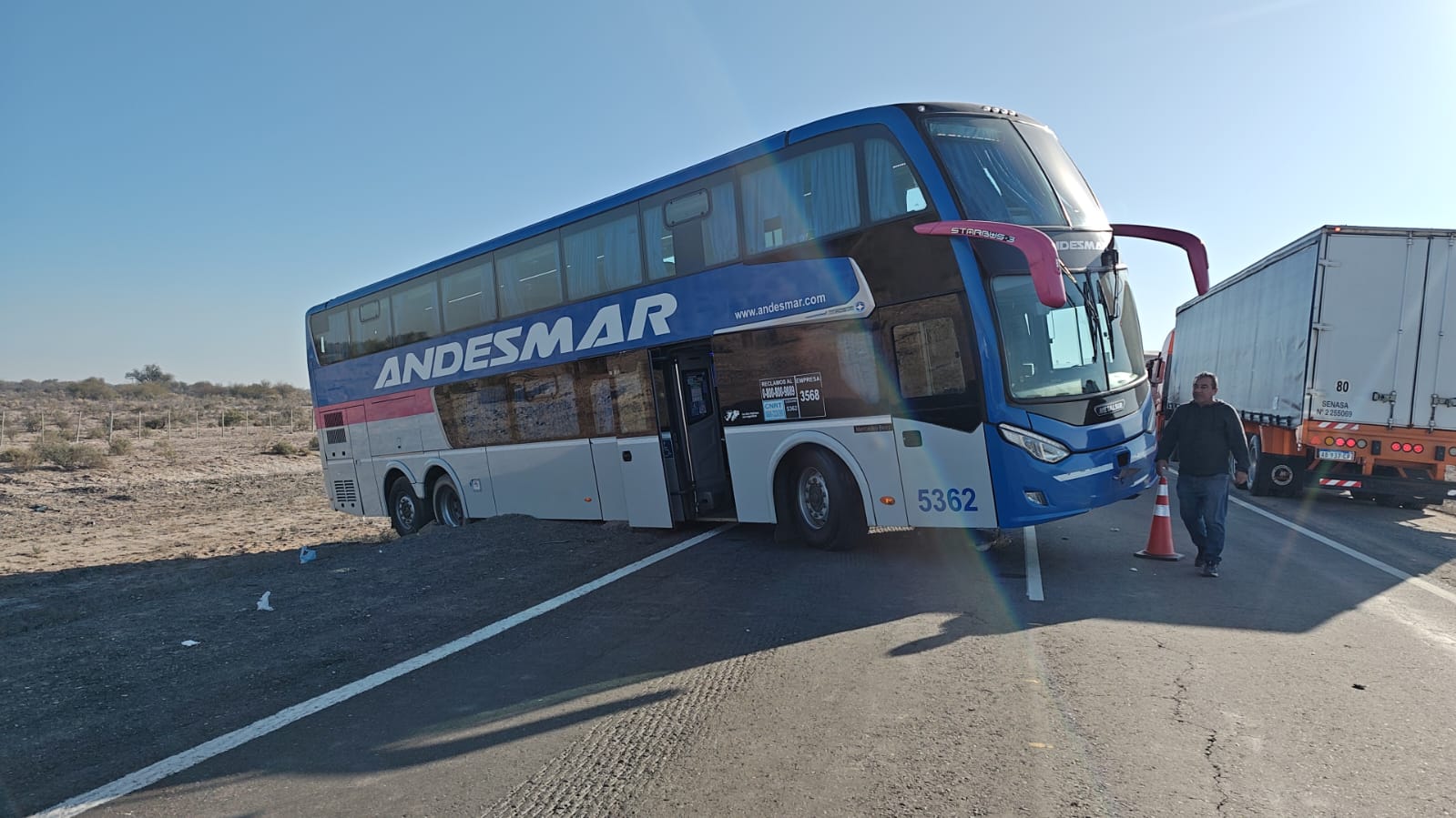 Maniobra fallida: un colectivo repleto de pasajeros se atascó en la Ruta 20