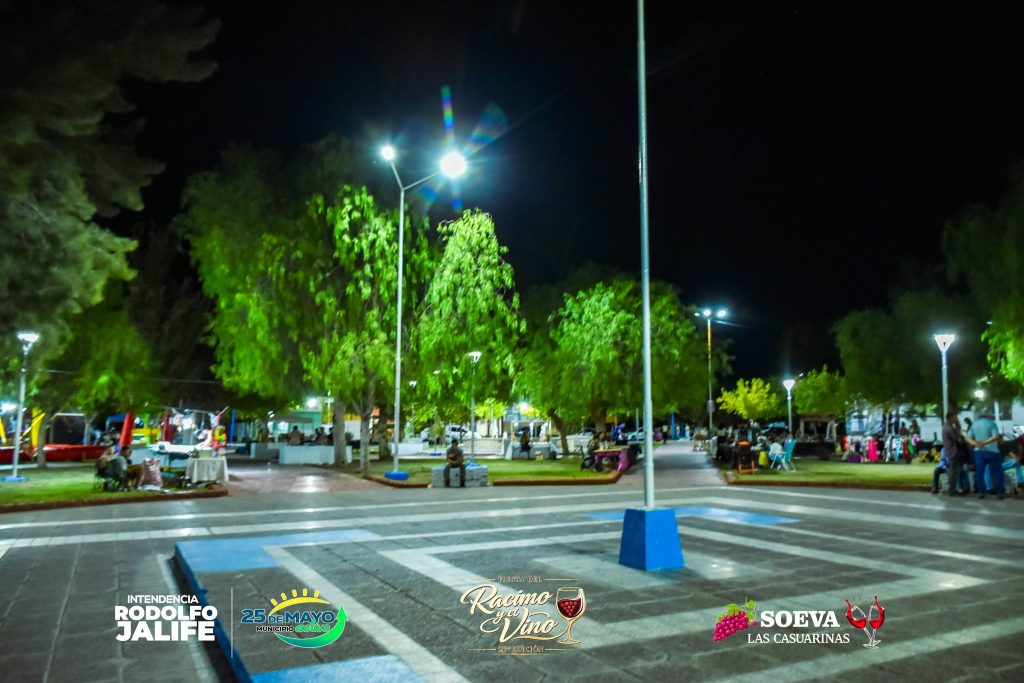 En la noche del 27 de febrero, el intendente Rodolfo Jalife dejó oficialmente inauguradas las nuevas luminarias LED y los trabajos de puesta en valor realizados en la Plaza Narciso Laprida de Las Casuarinas, en el marco del inicio de la 27° edición de la Fiesta del Racimo y el Vino.