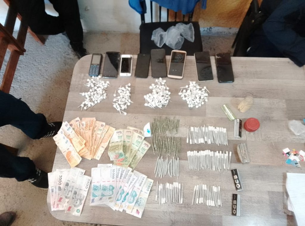 Asimismo, en el lugar se incautó dinero en efectivo, junto con anotaciones que contenían nombres y direcciones, lo que podría estar vinculado a la comercialización de sustancias ilegales. También fueron secuestrados 6 dispositivos móviles y papeles tipo pagaré con chip, que serán clave para la investigación.
