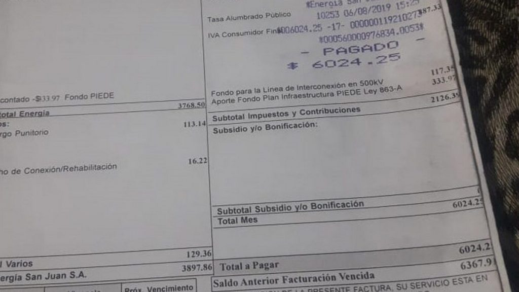 Tal cual sucede en Villa Media Agua, en Sarmiento, otros departamentos alejados del Gran San Juan también sufren el feroz incremento de en las tarifas de energía eléctrica, tal es el caso de los vecinos de Calingasta a quienes les llegaron boletas entre 6 y 11 mil pesos en domicilios de familias comunes, según informó El Sol de Calingasta.