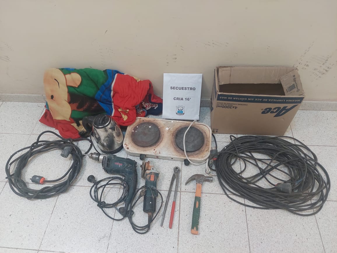 La Policía detuvo a Marchand, de 49 años, acusado de cometer un robo en unas cabañas de Alcaparroza, en la localidad de Calingasta. El sospechoso, oriundo del barrio Conjunto 10, en Chimbas, fue sorprendido en la vía pública con el botín sustraído, que incluía herramientas y electrodomésticos.