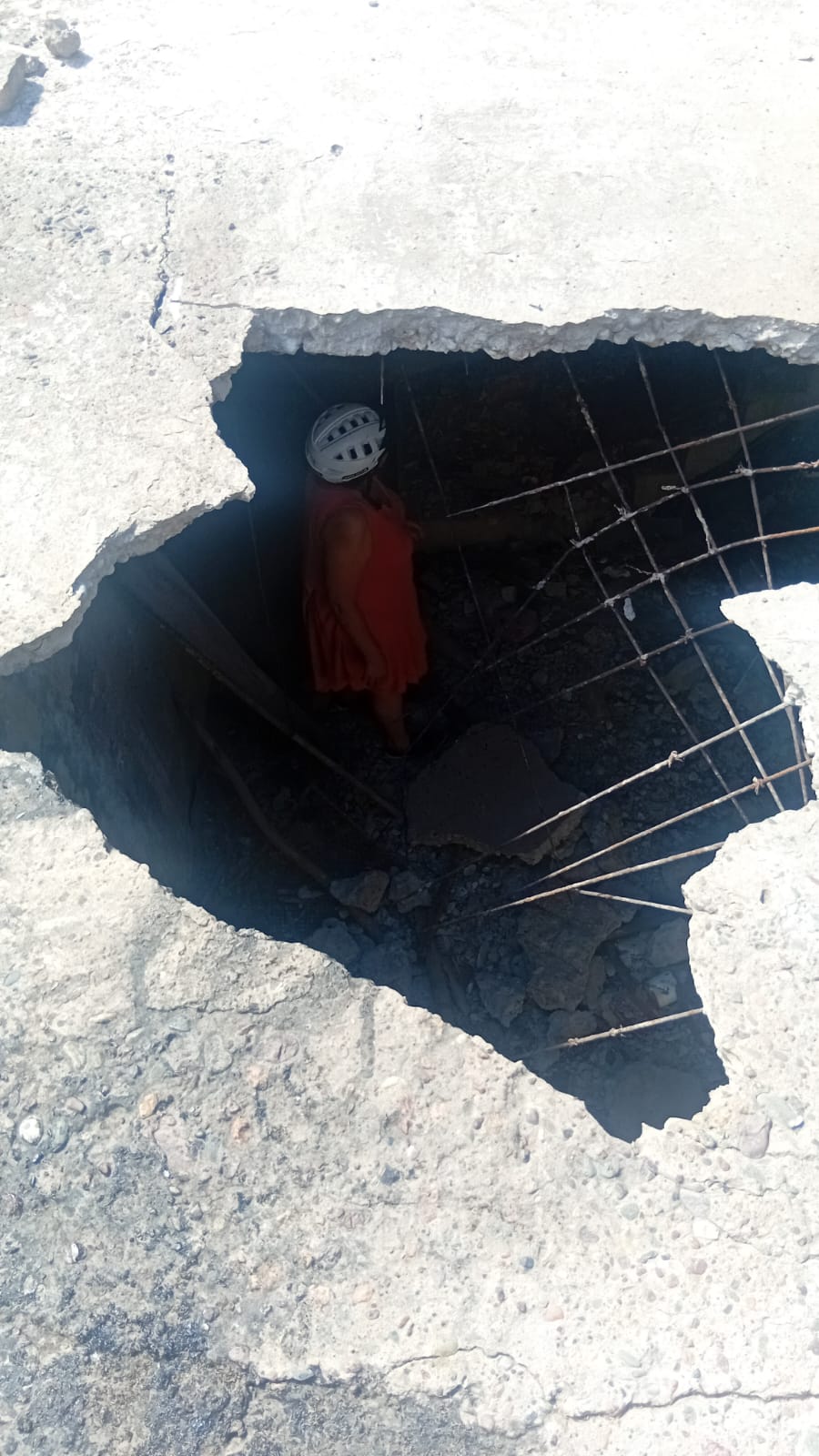 Al llegar, los uniformados observaron a la mujer consciente pero visiblemente asustada, en el interior de un sótano con más de 30 años de antigüedad, donde además había gran cantidad de escombros desprendidos, lo que complicaba su salida.