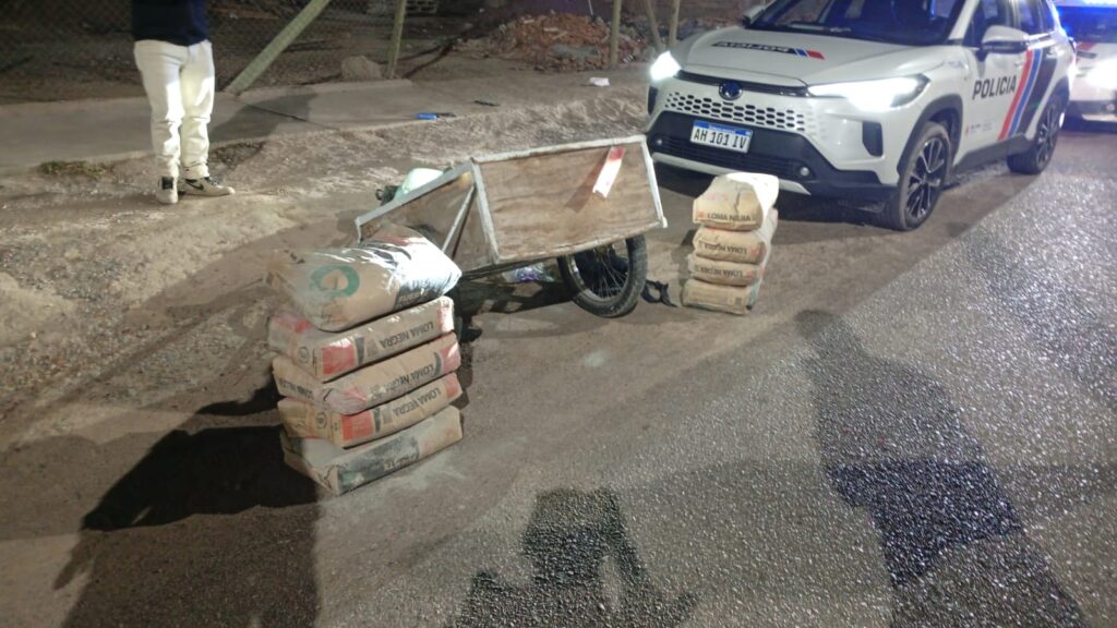 Dos hombres fueron aprehendidos en la madrugada tras ser sorprendidos con nueve bolsas de cemento robadas de una obra en construcción. El hecho ocurrió en la zona del barrio Coperaq 3 y la causa fue caratulada como hurto simple, con intervención de la UFI Flagrancia y el ayudante fiscal Dr. Alejandro Díaz.