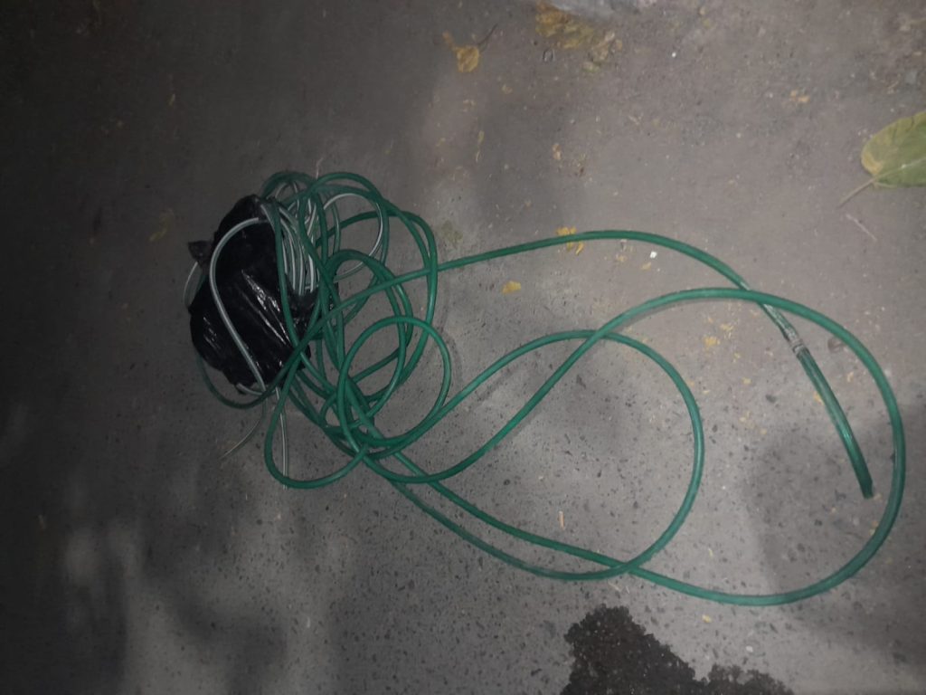 Al arribar al lugar, el personal encontró a un grupo de personas reteniendo al sospechoso junto a dos rollos de mangueras de riego, que habrían sido sustraídos minutos antes de una vivienda ubicada en el Barrio Alem, casa 33, propiedad de un vecino de 59 años.