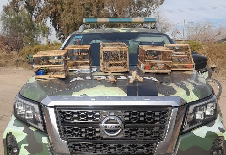 Horas más tarde, tras obtener la orden judicial, se realizaron allanamientos en los domicilios de los sospechosos. Allí se encontraron más elementos que agravan la situación: 5 aves autóctonas en cautiverio (de la especie pepitero de collar), 9 jaulas tramperas, patas de liebre Mara y de avestruz, boleadoras, un aire comprimido y un arma larga calibre 22 mm con municiones. Todos los elementos secuestrados quedaron a disposición del Juzgado de Paz de Caucete.