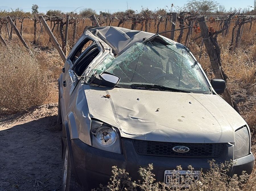 Una camioneta Ford EcoSport protagonizó un fuerte vuelco este domingo en Caucete. La conductora perdió el control y su acompañante fue trasladada al hospital Rawson.