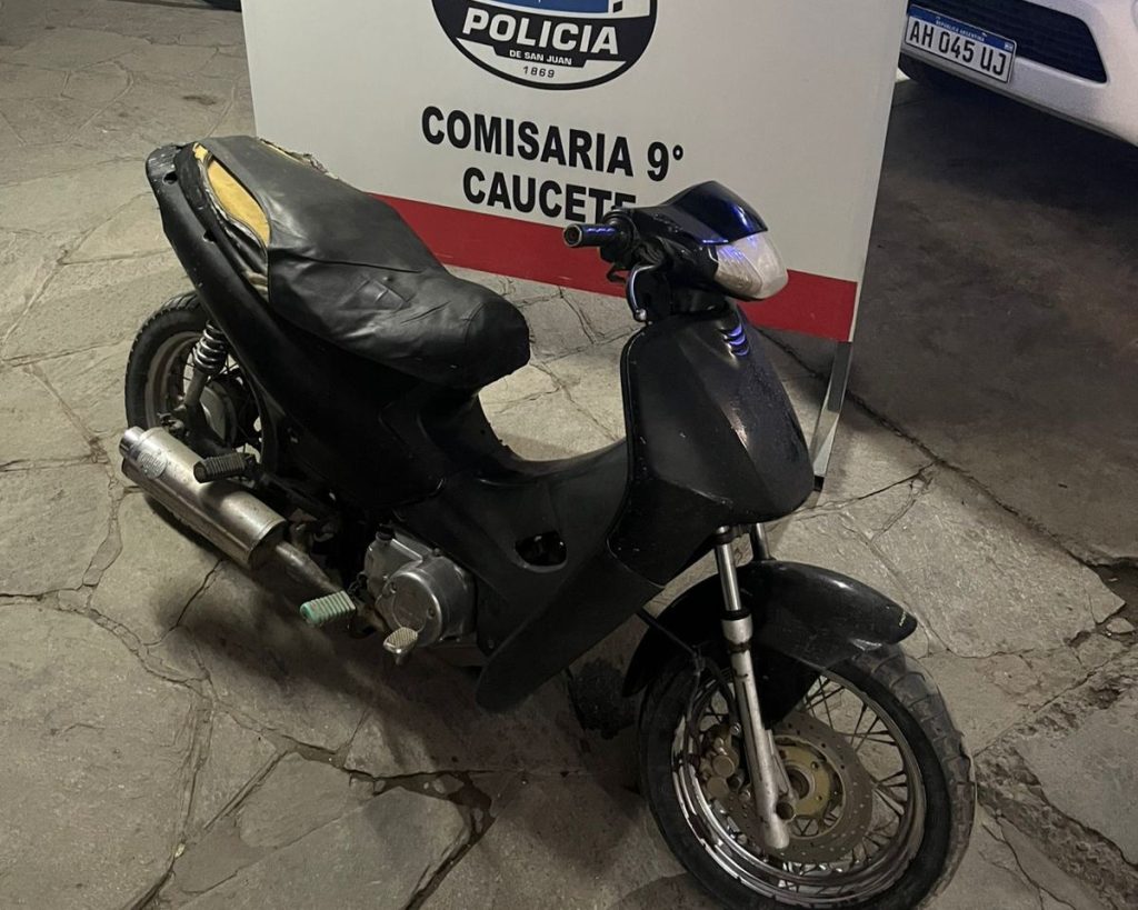 Un operativo de control e investigación realizado por la Brigada de Investigaciones de Comisaría Novena terminó con el secuestro de una motocicleta sospechosa en el Casino de Caucete la noche del lunes 28 de julio. El despliegue, encabezado por el Comisario Lic. Esteban Echavarría, tenía como objetivo detectar vehículos y bicicletas sustraídas que circulan en el departamento.