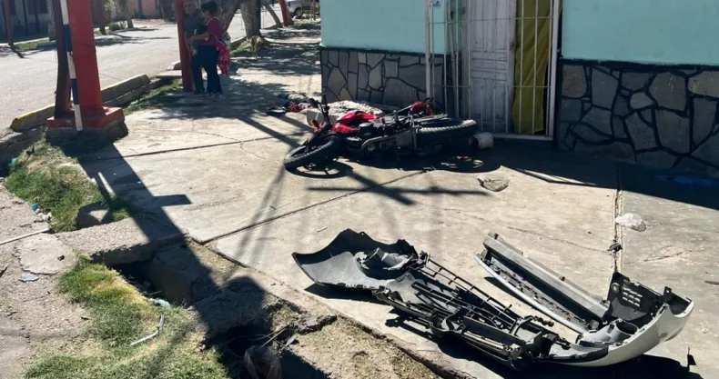 El accidente involucró a una moto Yamaha 250 cc, conducida por Juan Fernández Díaz (46), y a un Renault Logan remis, guiado por Andrés Firmapaz. Tras la colisión, la moto se deslizó hasta impactar contra el ingreso de una vivienda.
