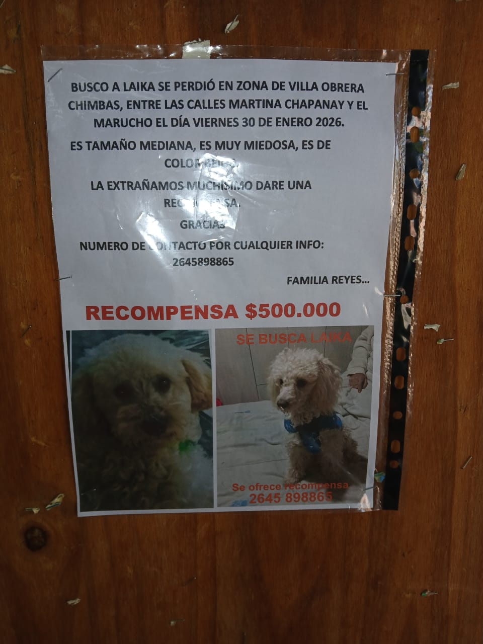 Con el objetivo de recuperarla lo antes posible, la familia ofrece una recompensa de $500.000 para quien aporte datos certeros o la entregue. “Solo pedimos que nos devuelvan a Laika”, remarcaron.