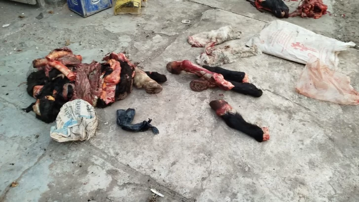 En el interior del domicilio, las autoridades encontraron los restos de tres equinos de gran porte, dos de pelaje zaino y una tordilla, todas hembras, ya en proceso de despiece. El olor y la escena eran estremecedores.