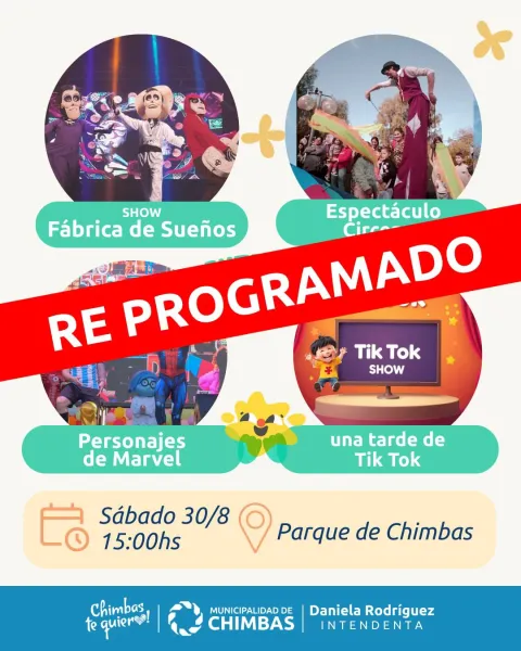 Por motivo de las inclemencias climáticas anunciadas para este fin de semana, y priorizando siempre la seguridad de cada chimbero y chimbera, informamos que el Gran Chocolate en el Parque de Chimbas, previsto para este sábado 30 de agosto, será reprogramado.