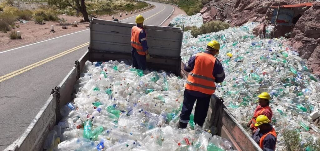 Luego de acceder a la propuesta, los empleados de Vialidad Nacional volcaron el agua en camiones cisternas para regar los árboles de la zona y las botellas fueron compactadas y colocadas en contenedores para su reciclado.