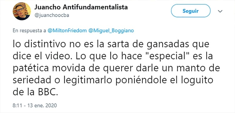 En el día de ayer el economista Miguel Boggiano publicó, a través de sus redes sociales, un “documental” de la BBC que resultó ser una parodia pero las repercusiones fueron tan grandes que la misma BBC le solicitó que retirara dicho video porque estaba usando su marca registrada.