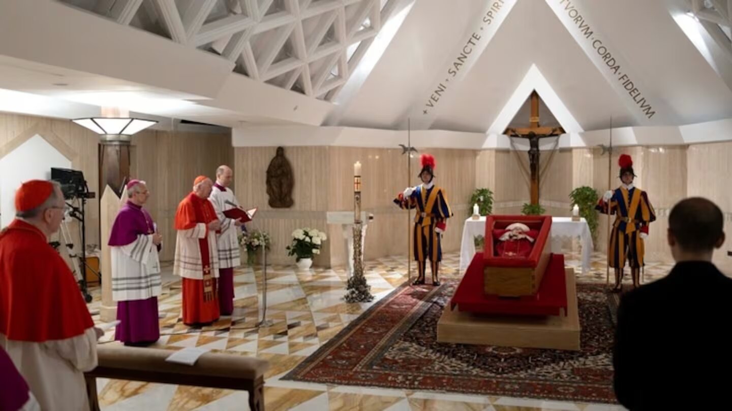 Las imágenes muestran al Papa Francisco en el ataúd cuando lo transportaron a la capilla Santa Marta.