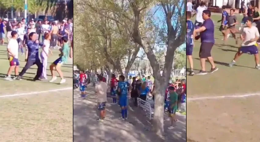 Según testigos, una discusión por una decisión arbitral derivó en un enfrentamiento masivo que involucró a jugadores, simpatizantes y espectadores, entre ellos familias con niños.