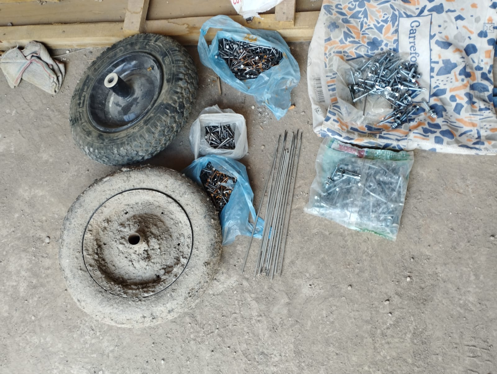 En el interior del inmueble, los uniformados sorprendieron al sospechoso con elementos presuntamente robados, entre ellos dos ruedas de carretilla y una bolsa que contenía electrodos, clavos y tornillos.