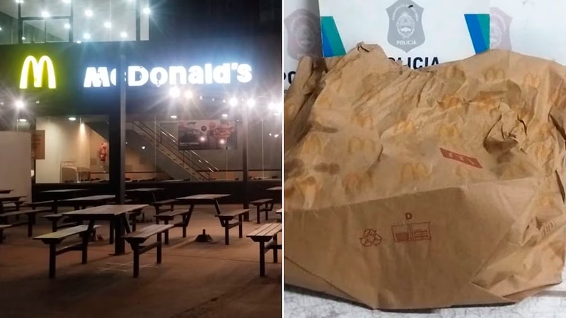 De acuerdo con la reconstrucción aportada por las autoridades, el asaltante logró reducir a cuatro empleados del local —una mujer de 24 años y tres jóvenes de 21, 22 y 18 años— a quienes intimidó y ordenó que le entregaran mercadería. El sospechoso luego tomó una caja cerrada con 120 hamburguesas y otras cuatro ya preparadas y acompañadas de papas fritas.