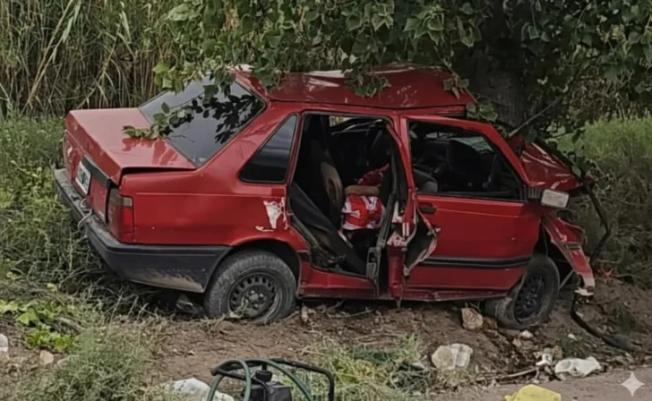 El hecho ocurrió en la intersección de Las Correas y Espejo, donde un vehículo terminó incrustado contra un árbol de gran porte ubicado a la vera del camino.