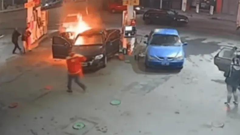 En el video se ve cómo el vehículo en cuestión se prendió fuego en segundos, generando pánico en el resto de las personas que estaban cerca del surtidor.