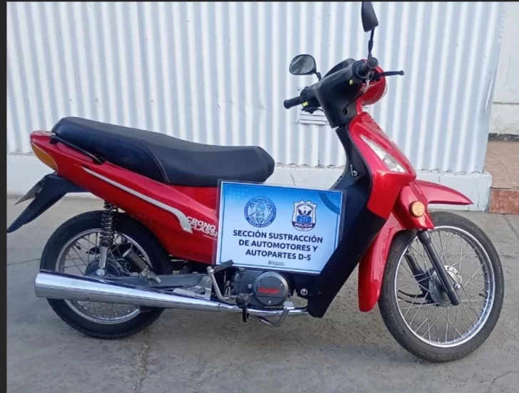 El martes 23, en calle España y Ezpeleta, en Capital, fue detenida una mujer a bordo de una Keller Cronos 110 cc roja. Al chequear los datos, se confirmó que el vehículo tenía pedido de secuestro desde el 11 de enero por hurto simple, con intervención de la Comisaría 9ª. Por orden de la jueza Alicia Garcés, la moto fue incautada.