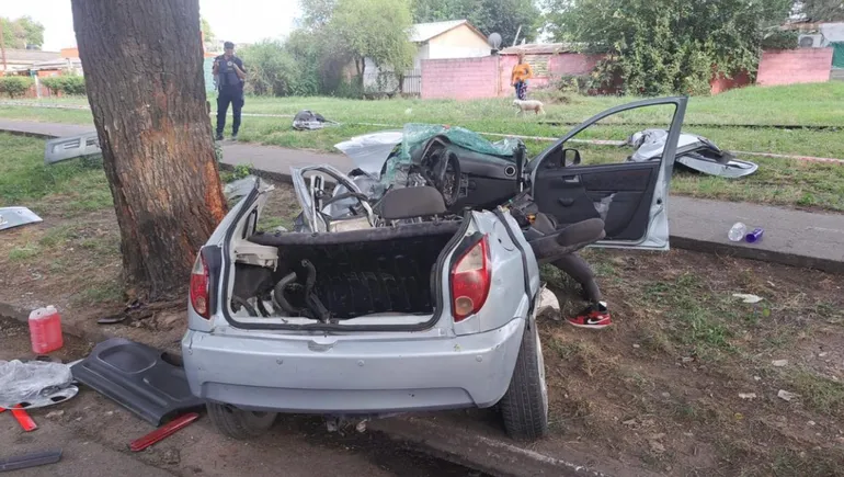 La violencia de la colisión fue tal que el rodado quedó completamente destruido, provocando incluso que el tubo de GNC saliera despedido a varios metros del lugar, mientras que diversas autopartes quedaron dispersas por toda la zona.