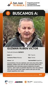 La policía y familiares solicitan colaboración para dar con el paradero de Rubén Guzmán, de 54 años, quien fue visto por última vez el pasado 28 de agosto de 2025.