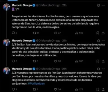 El mandatario amplió su postura en un hilo de X, afirmando que en San Juan se valora la vida desde sus inicios y que las políticas públicas sobre niñez deben centrarse en la protección y el acompañamiento de los más vulnerables, sin atravesarse por cuestiones ideológicas.