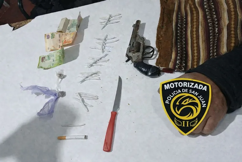 En la requisa, los policías encontraron un revólver calibre .38 cargado, un cuchillo, 26 porros, envoltorios con marihuana y dinero en efectivo.