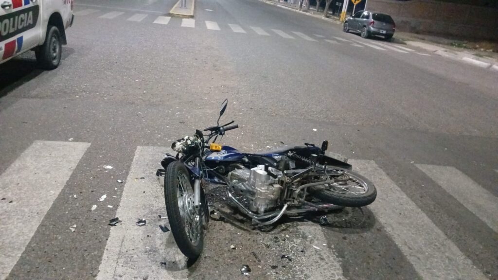 Franco Muñoz, de 26 años, circulaba a bordo de su motocicleta Motomel 150 cc por calle Agustín Gómez de este a oeste. Delante suyo iba una camioneta blanca, aparentemente marca Toyota. De manera repentina, el conductor del rodado de mayor porte realizó un giro en “U”, maniobra que tomó por sorpresa al joven motorista, quien terminó impactando de lleno contra el lateral izquierdo del vehículo.