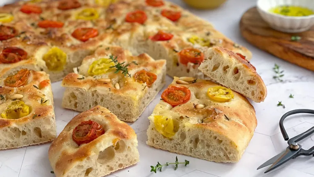 En cuanto a su estructura, la masa de la focaccia es similar a la de la pizza. Sin embargo, la gran diferencia radica en que la masa de esta es más airead.