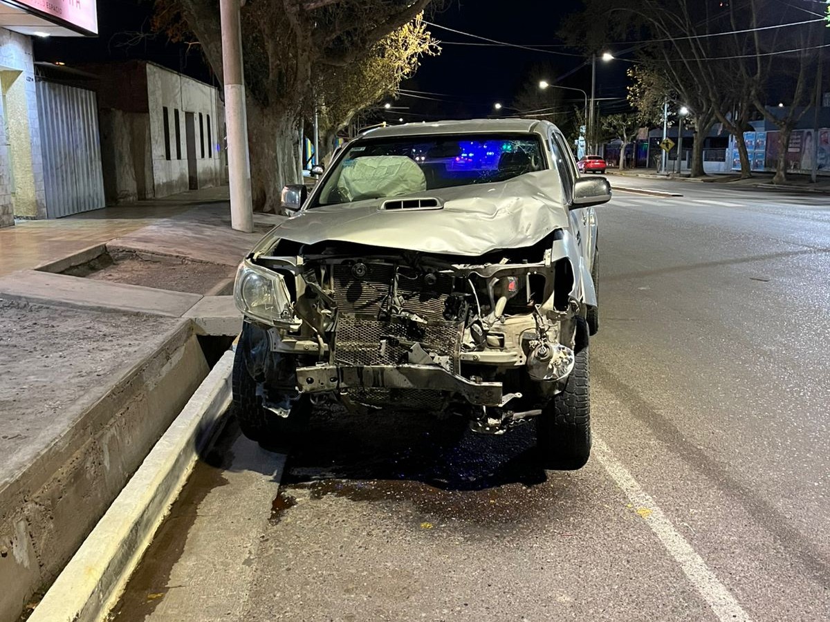 Grave accidente de tránsito en Rivadavia; una camioneta y una motocicleta colisionaron violentamente en la intersección de Avenida Libertador y calle Las Palmas, alrededor de las 6:05 de este domingo.