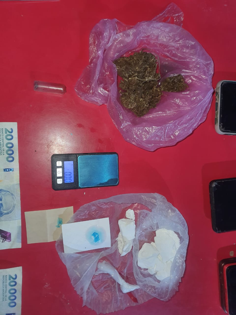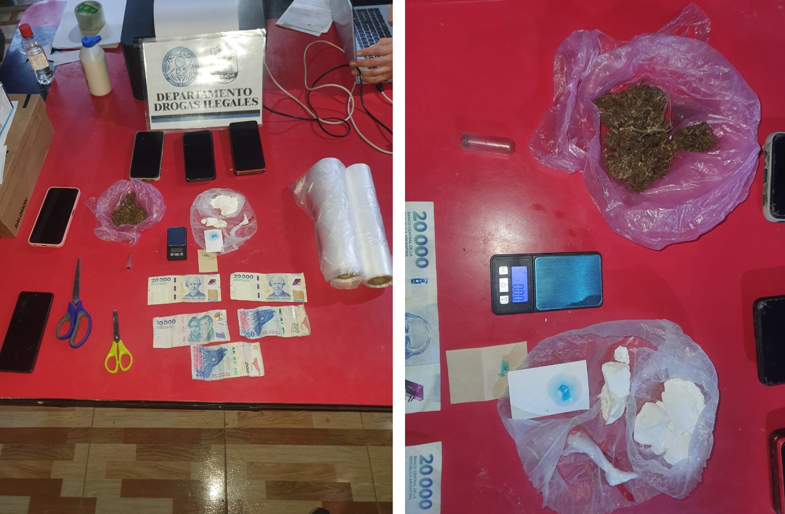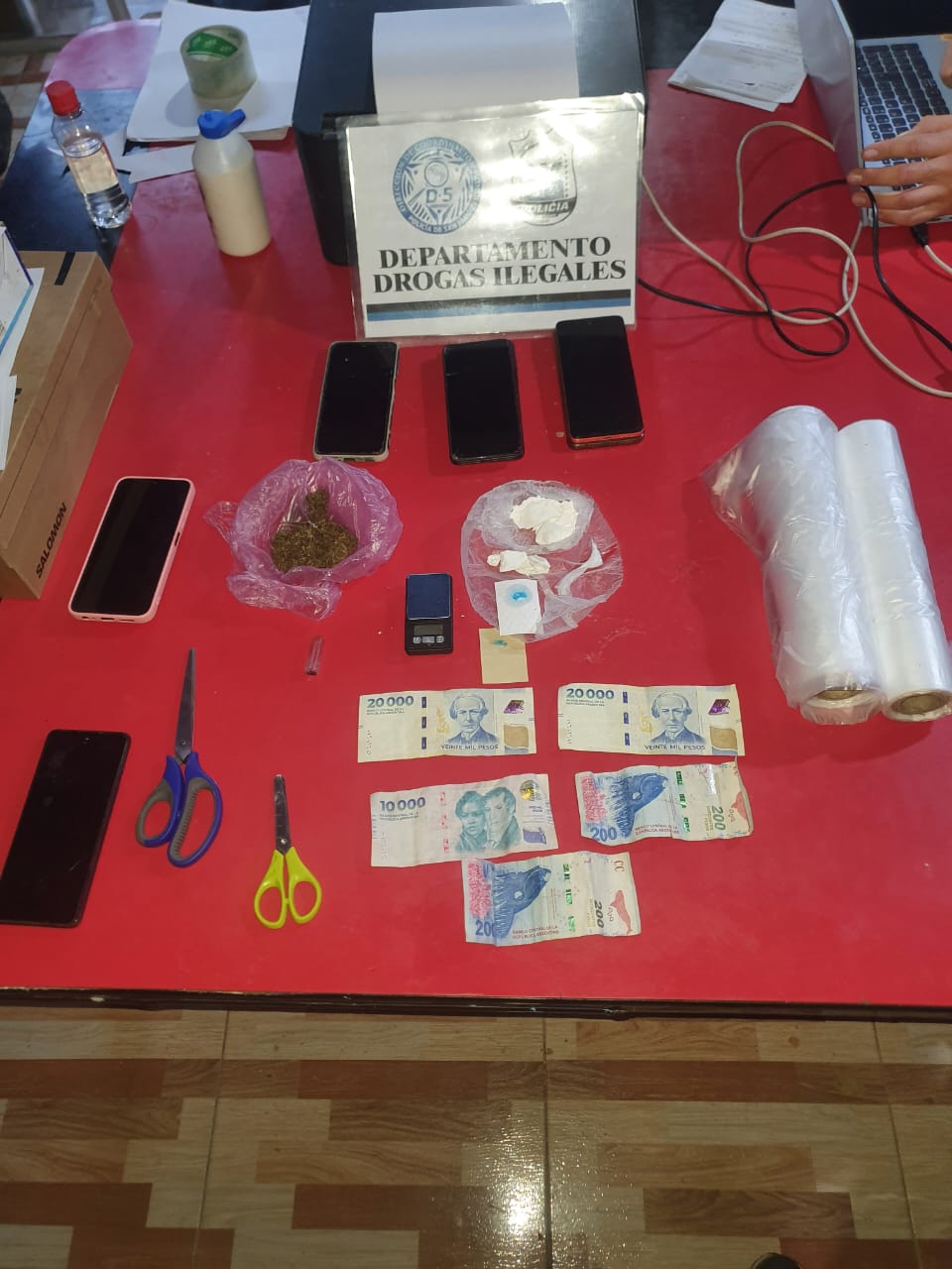 Durante el operativo, los efectivos lograron el secuestro de 400 gramos de cocaína y 300 gramos de marihuana, ambos fraccionados para la venta, además de una balanza de precisión, diversos elementos de fraccionamiento, $500.000 en efectivo y teléfonos celulares, considerados de interés para la causa.