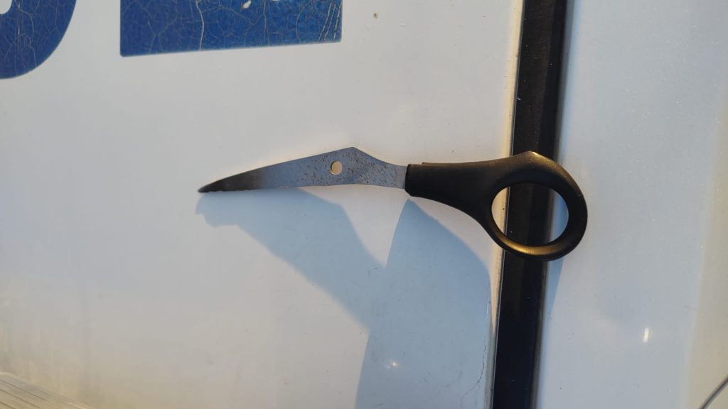 Durante el procedimiento, los uniformados realizaron un palpado de urgencia, logrando el secuestro de un arma corto punzante que llevaba el sospechoso.