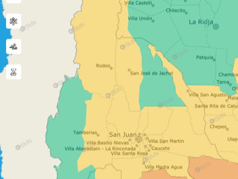En el caso de San Juan, se advierte por viento Zonda, especialmente en zonas cordilleranas y precordilleranas, con velocidades que oscilarán entre 50 y 70 km/h, y ráfagas que en los niveles más altos podrían superar los 120 km/h.