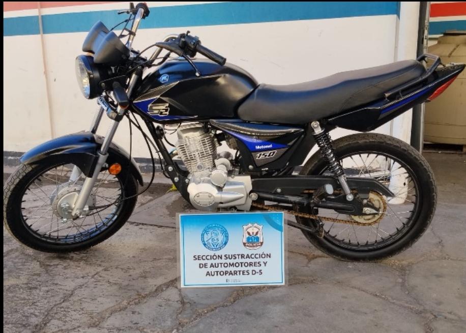 Por otra parte, la labor de la Sección Sustracción de Automotores también incluyó operativos de control. En este marco, en el departamento Rawson, en la intersección de Paula Albarracín de Sarmiento y calle Nasca, efectivos interceptaron una motocicleta Motomel Serie 2 que circulaba sin dominio.