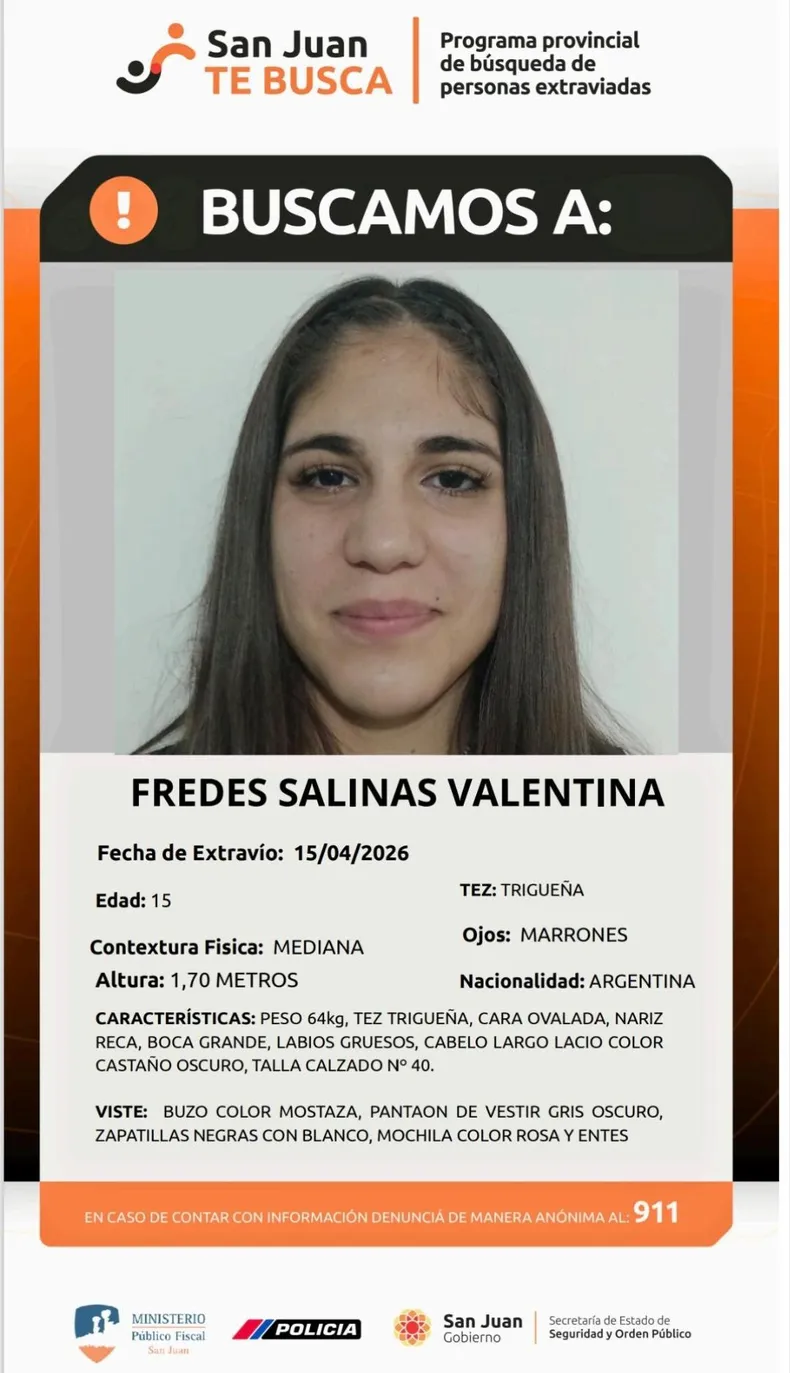 La preocupación crece en San Juan tras la desaparición de una adolescente de 15 años y de un hombre de 33, cuyos casos son investigados por la Policía y el Ministerio Público Fiscal. En las últimas horas, se activaron distintos operativos de búsqueda y se difundieron sus datos a través del programa oficial “San Juan Te Busca”.