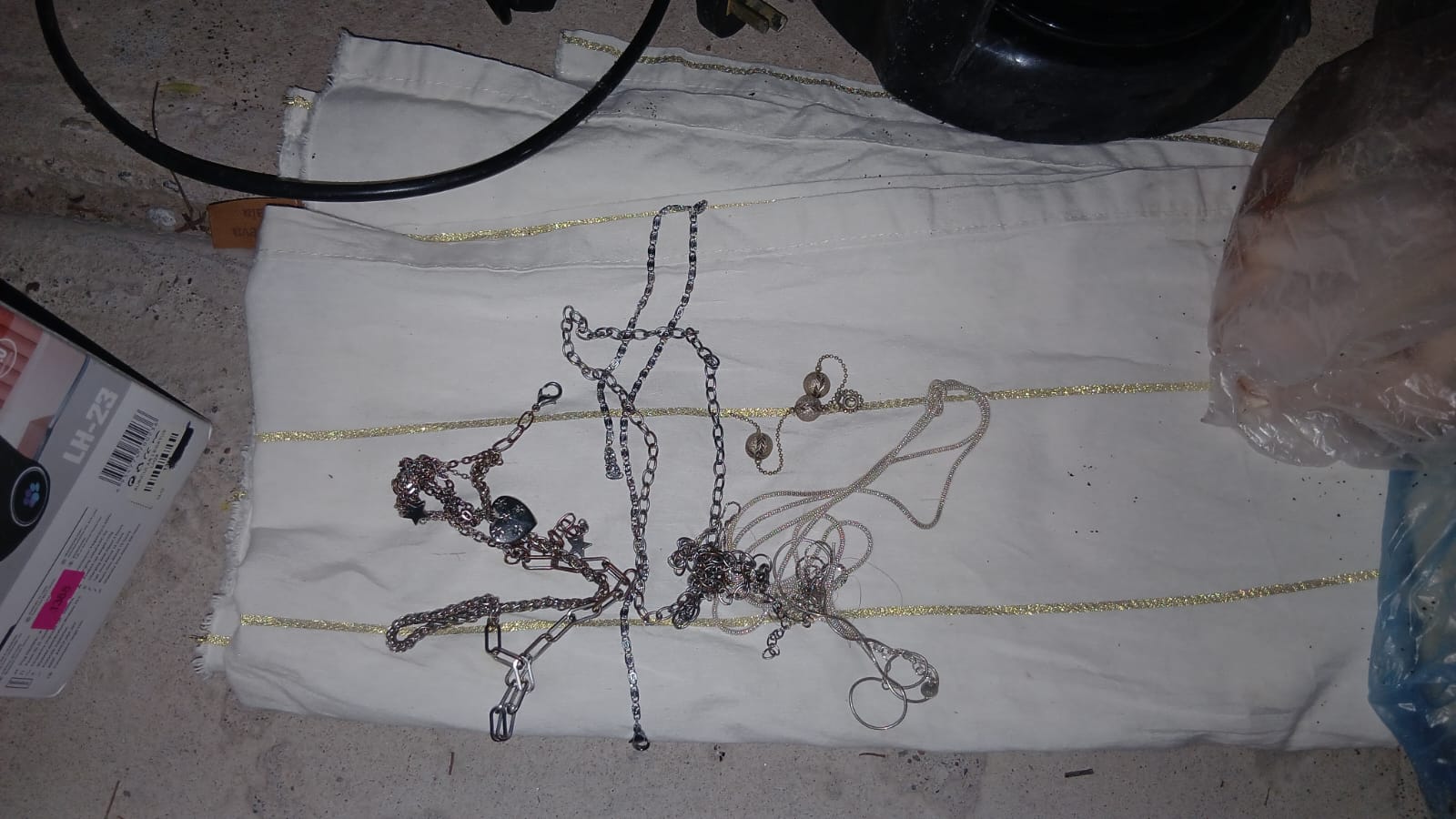Minutos después, se hizo presente la víctima del robo, quien denunció que delincuentes violentaron el ingreso a su domicilio. La mujer reconoció como propios diversos objetos recuperados, entre ellos: dos notebooks (una del Gobierno y otra marca Compaq), un TV LED Noblex de 40 pulgadas, una cafetera Moulinex, un secador de pelo Maverick, una barra de sonido RCA, $100.660 en efectivo, dos mochilas (una infantil lila y otra negra), nueve cadenas de bijouterie, una pulsera de plata, dos cascos y la bicicleta utilizada por el acusado.