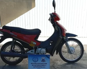 Una Zanella ZB 110 c.c. azul, con pedido de secuestro por hurto (8 de marzo de 2025, Comisaría 31°).