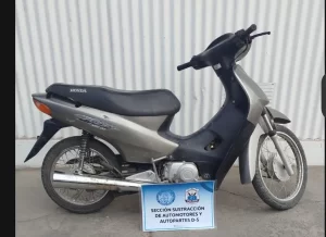 Una Honda Biz 105 c.c. gris, sin dominio, con pedido de secuestro por hurto (8 de abril de 2025, Comisaría 4°).