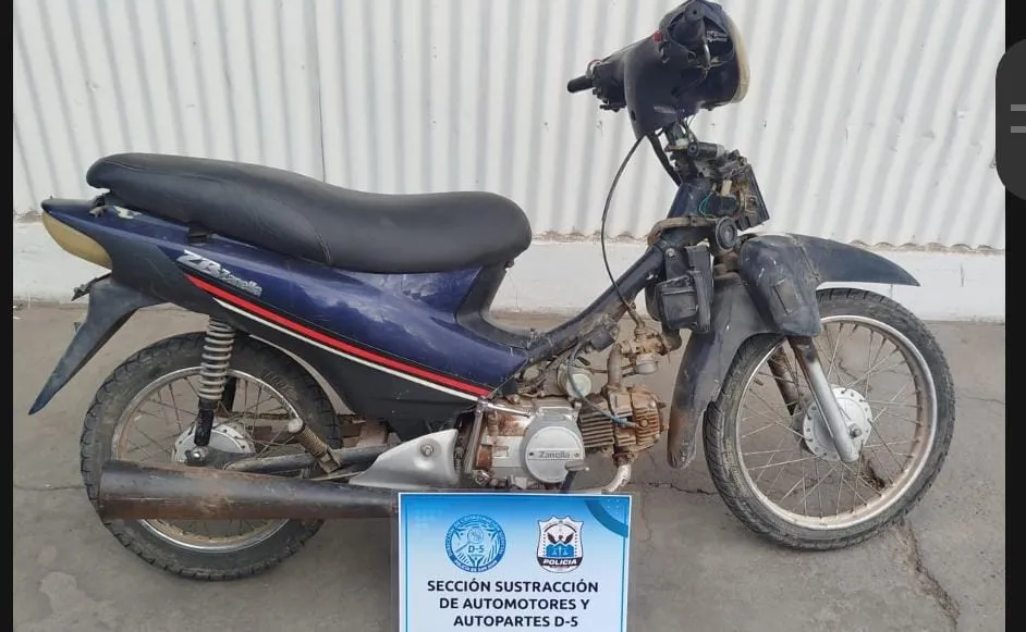 Una Zanella ZB 110 c.c. azul, con pedido de secuestro por hurto (8 de marzo de 2025, Comisaría 31°).