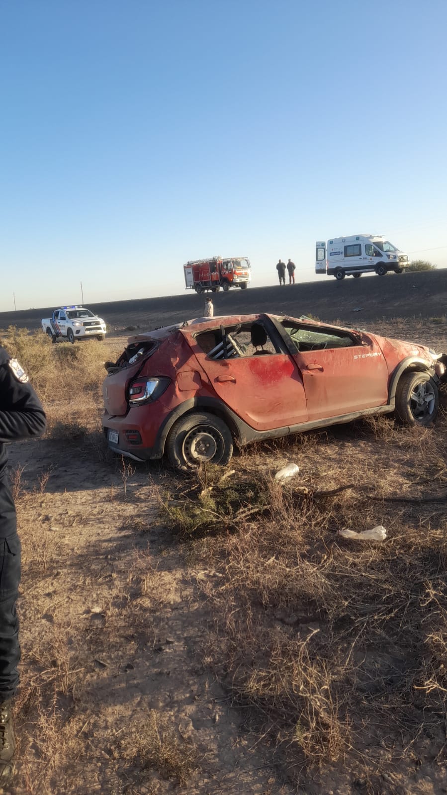 Por causas que aún se investigan, y sin intervención de terceros, el conductor perdió el control del vehículo, el cual invadió el carril contrario, se desvió hacia la banquina izquierda y, tras recorrer varios metros de forma descontrolada, terminó volcando. El auto quedó en posición normal, con la parte delantera orientada hacia la ruta.