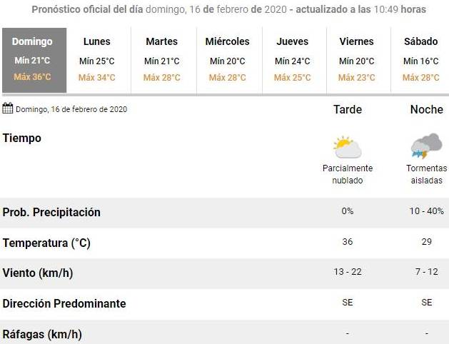 Se preveía una temperatura máxima de 36ºC pero es probable que sea superada ubicándose cerca de los 40ºC.